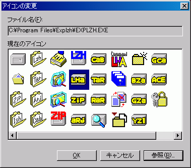 初期は EXPLZH.EXE がデフォルトで指定されていますが、他のアイコンファイルを自由に指定できます。