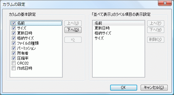 XP, Vista の場合は「並べて表示」の場合のラベル項目の文字表示設定も行えます。(ダイアログ右側) |